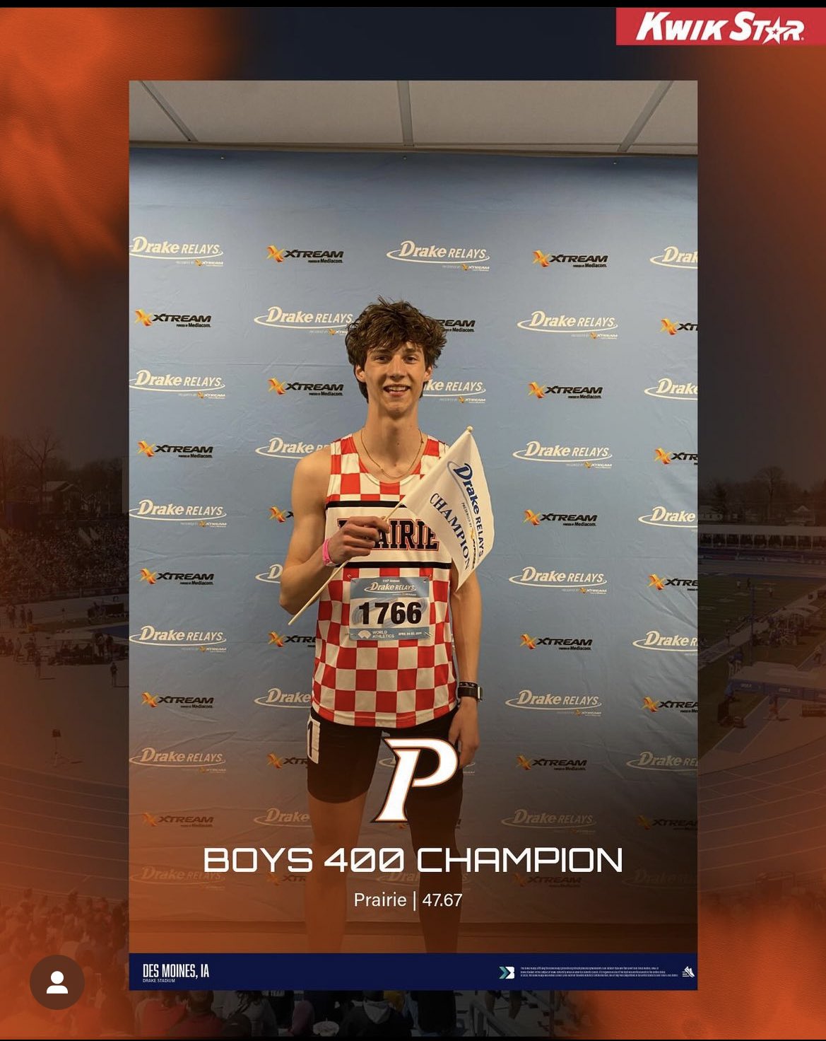 "After a year of working with Brendan he's taken me from a 50.8s 400m runner who was ranked 61st in the state to a 47.67s runner who is ranked 2nd in the state and Drake Relays champion. That time ranks 10th all time in state history.