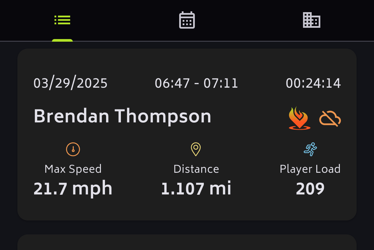 Your data is tracked automatically: sprint speed, workload, movement patterns, and more.